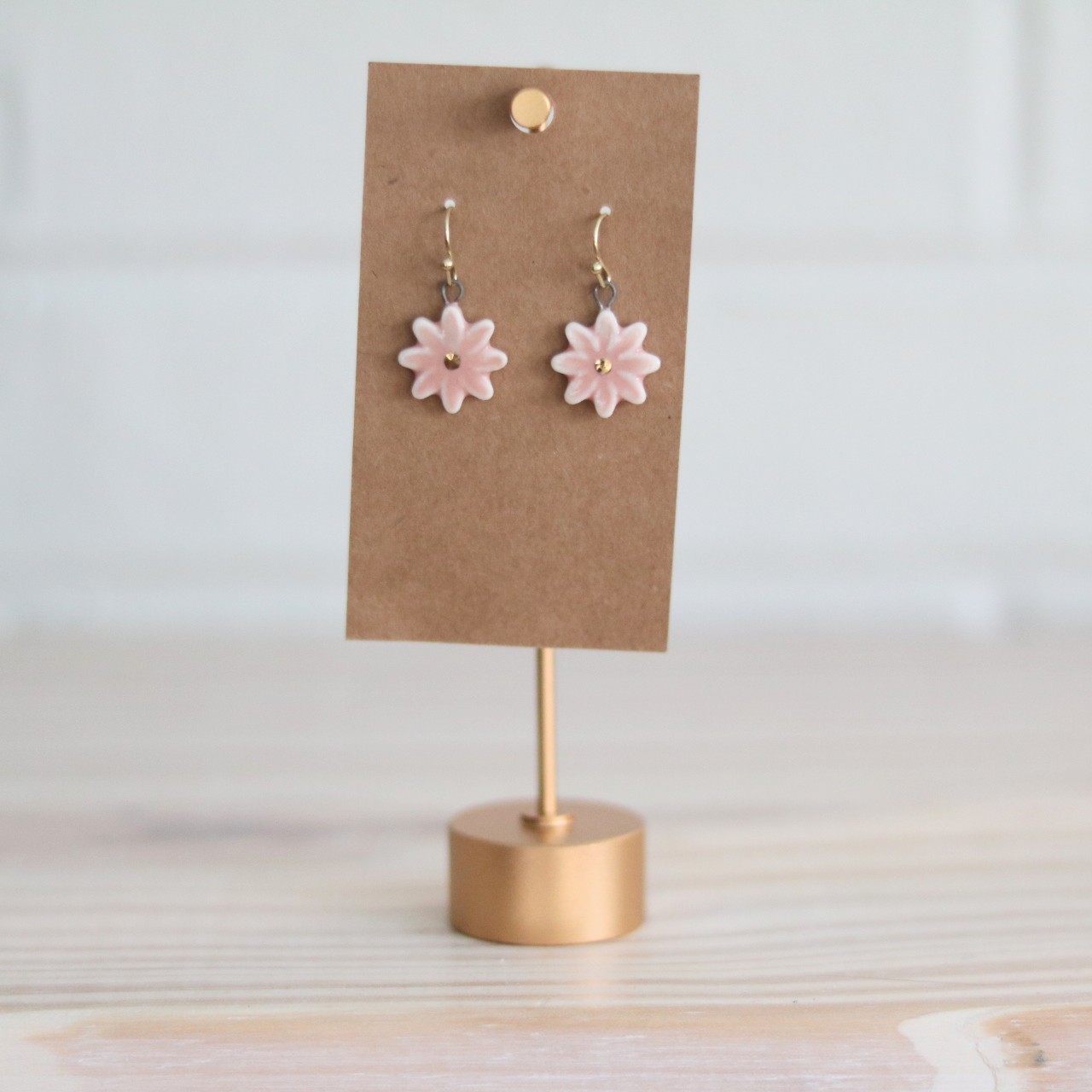 Bring a touch of charming, handcrafted elegance to your everyday style with this delightful porcelain flower collection. Each delicate piece is individually shaped and finished with a rich glaze or unglazed porcelain, giving every bloom its own soft, organic character. At the center of each flower sits a hand-applied 22k gold luster detail, adding a warm, radiant glow that beautifully catches the light.